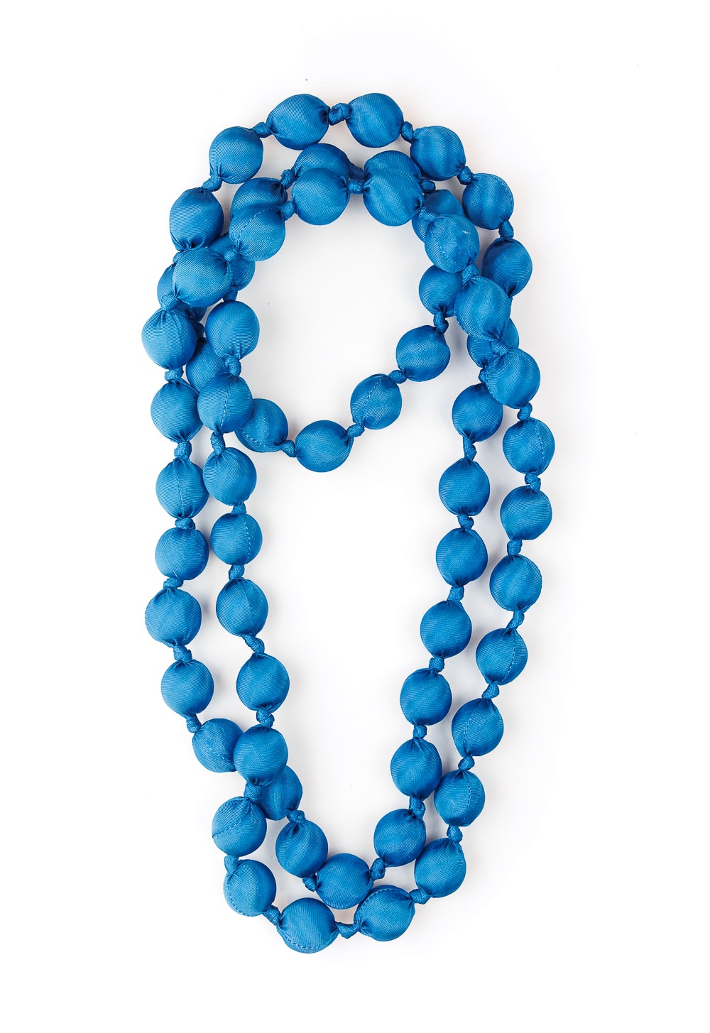 Collana in seta 100% con palline di legno di 2 cm circa (Circa 62 palline).