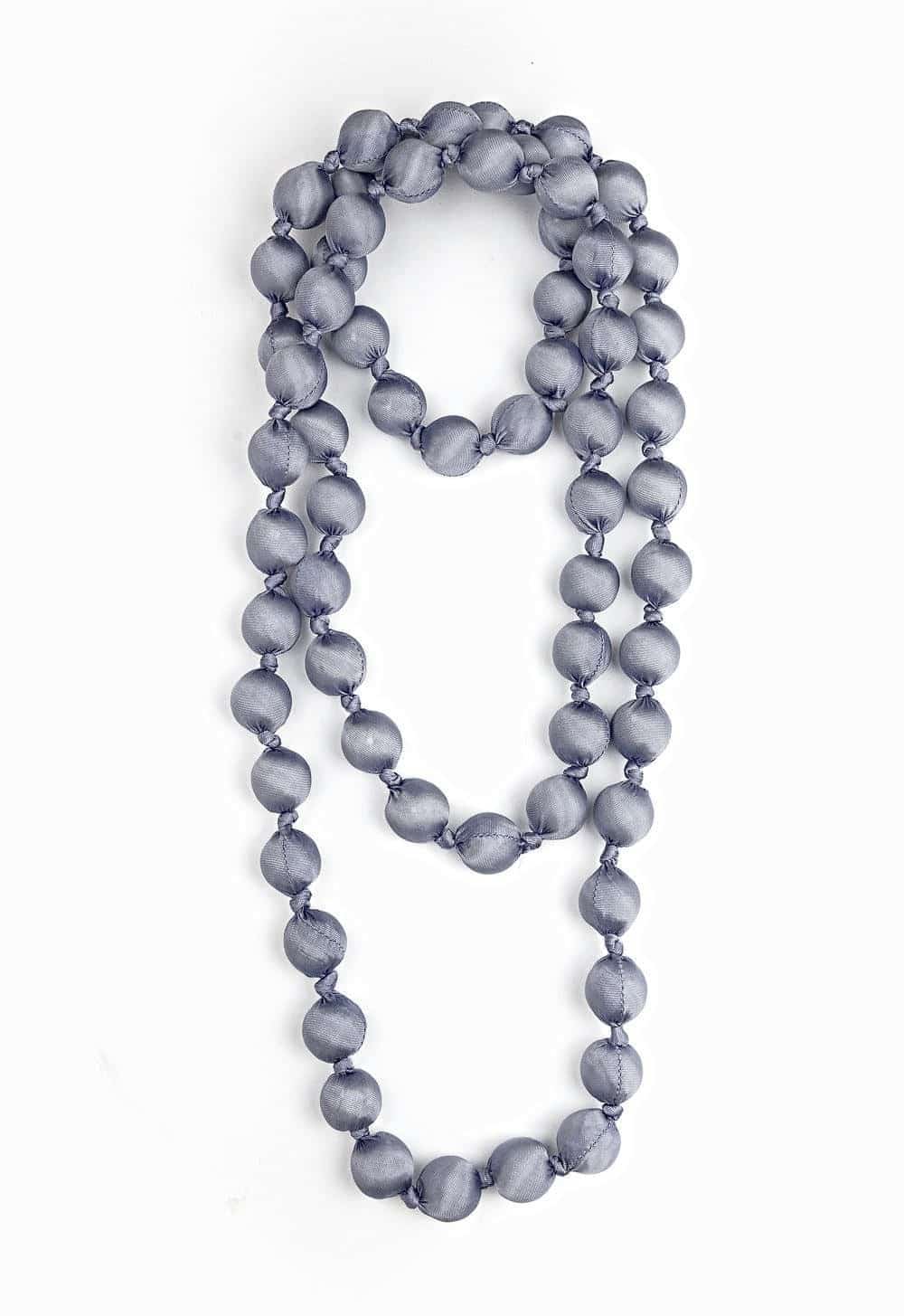 Collana in seta 100% con palline di legno di 2 cm circa (Circa 62 palline).