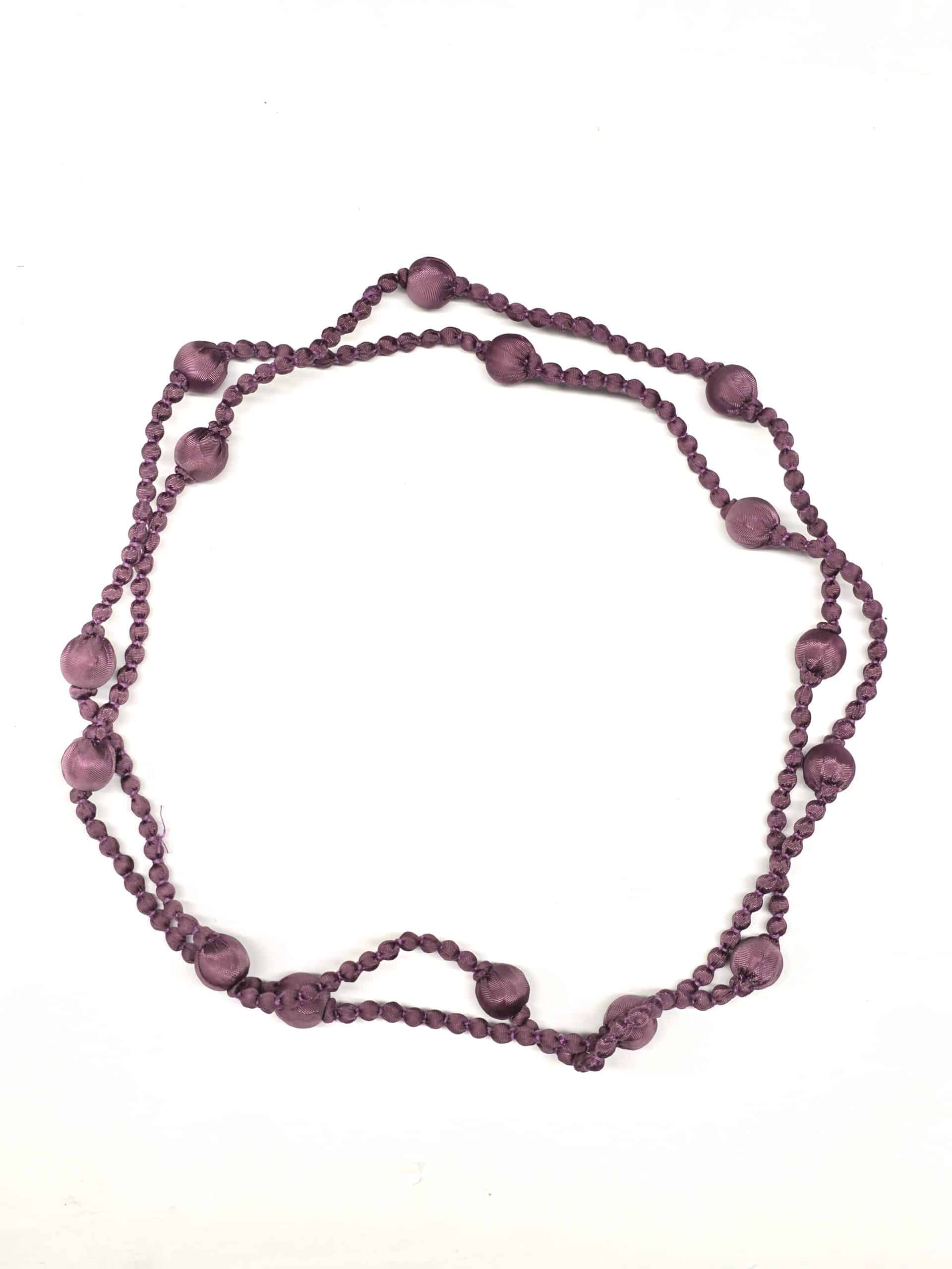 Collana realizzata in seta, di lunghezza sufficiente per tre giri intorno al collo.