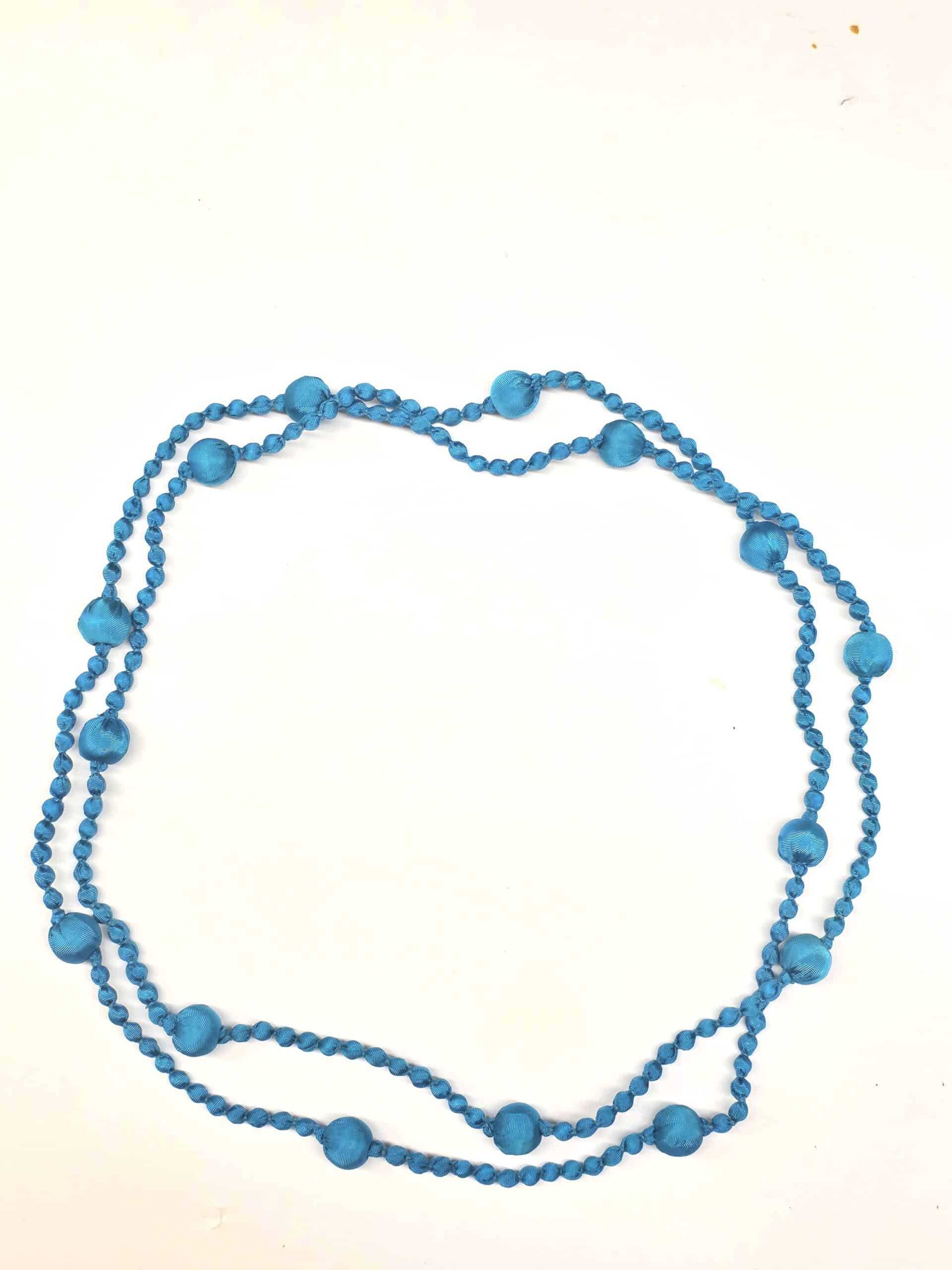 Collana realizzata in seta, di lunghezza sufficiente per tre giri intorno al collo.