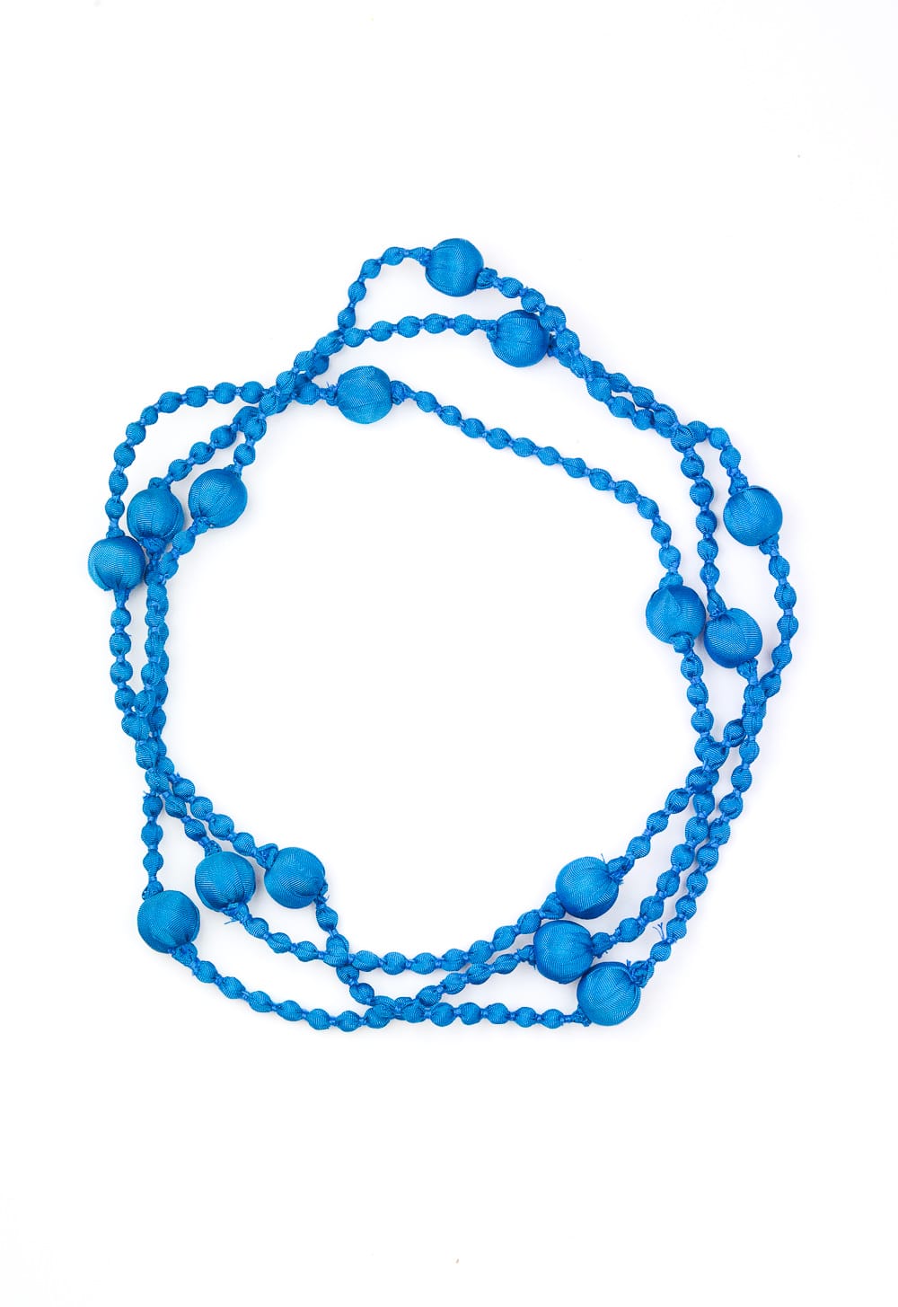 Collana realizzata in seta, di lunghezza sufficiente per tre giri intorno al collo.