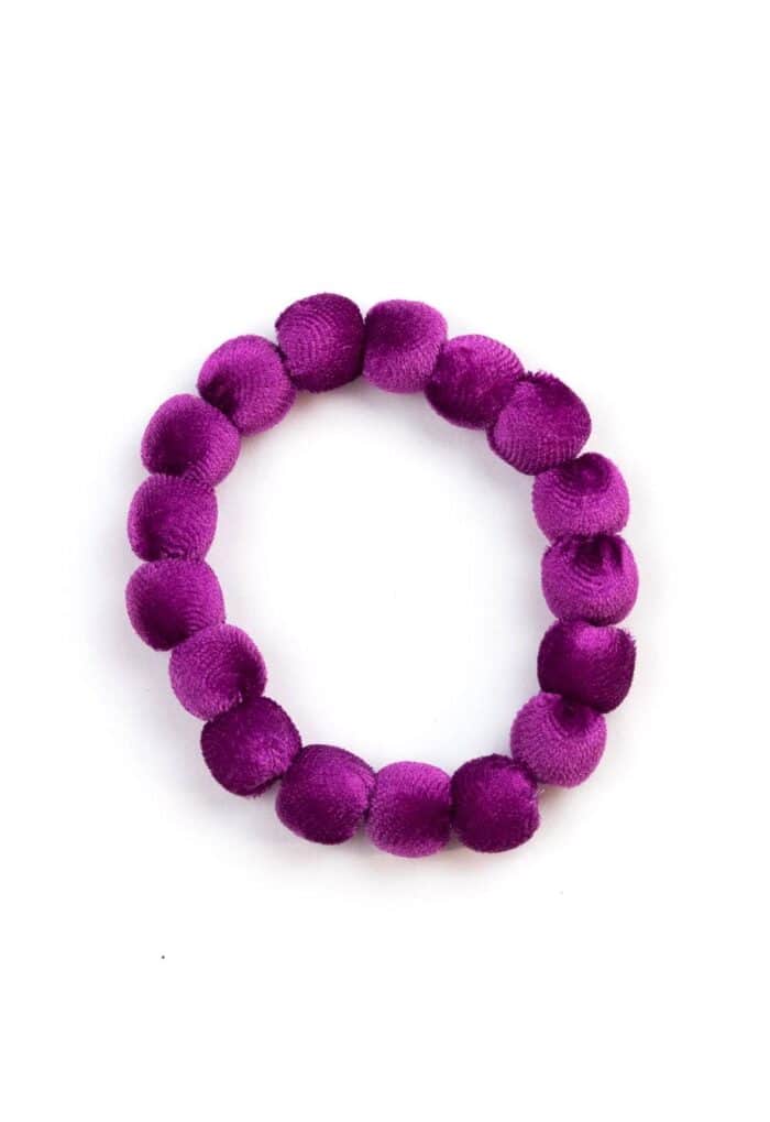 Braccialetto realizzato a mano con 16 sfere di legno ricoperte di morbido velluto.