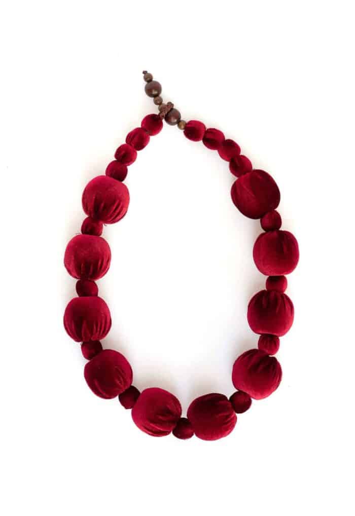Realizzata a mano con palline di legno ricoperte di velluto di dimensione variabile da 1 a 3,5 cm