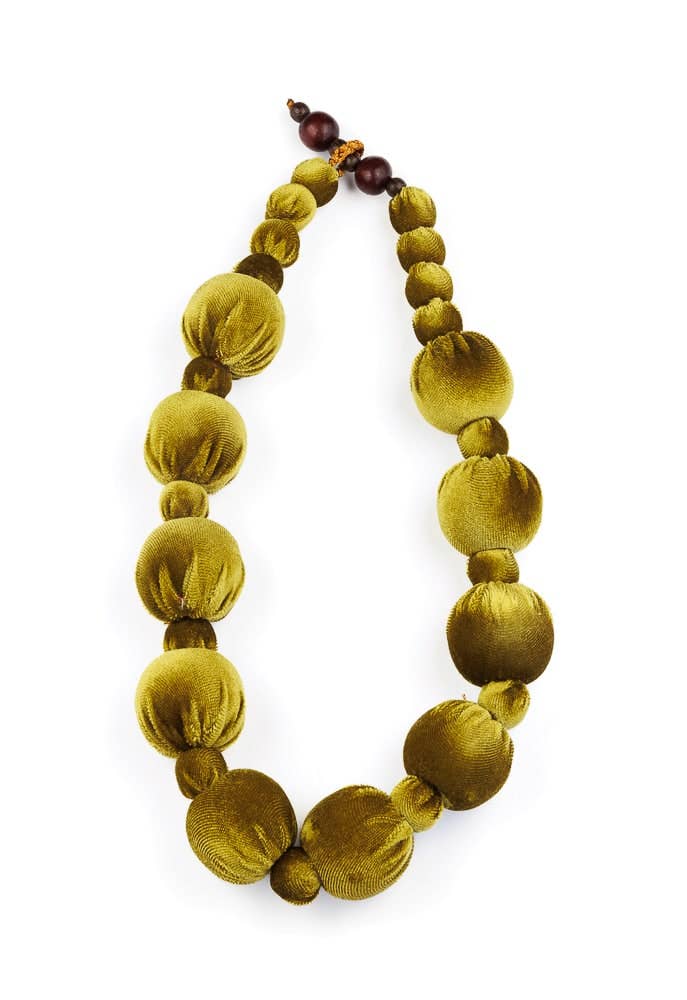 Realizzata a mano con palline di legno ricoperte di velluto di dimensione variabile da 1 a 3,5 cm